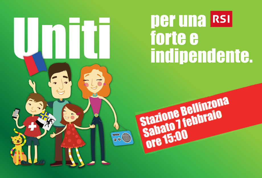 Sabato 7 febbraio, alle ore 15.00, a Bellinzona si terrà la manifestazione popolare “Uniti per una RSI forte e indipendente”, a difesa del servizio pubblico radiotelevisivo nella Svizzera italiana.